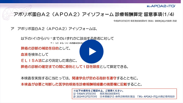 - 体外診断用医薬品「東レAPOA2-iTQ」の適正使用指針 (一般社団法人 日本膵臓学会)